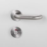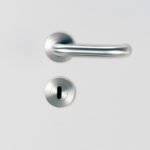 In Pferdeställen wurden häufig Türgriffe eingesetzt, deren Ende sich wieder dem Türblatt zuwendet. So konnten sich Leinen und Führseile nicht verfangen. Auch in öffentlichen Gebäuden sind solche geschlossenen Drückerformen wie bei ALESSIA vorgeschrieben. Für Ausstattungen im Objektbereich bieten Beschläge der PROFESSIONAL LINE den kompletten Umfang für Profis. Die Garnituren der Professional Line überzeugen mit nur 8 mm Rosettenstärke, feinsten Fugen der Schraubrosetten, kleinsten Radien und dem PROFESSIONAL LINE eigenen und unverkennbaren Premium Finish. Hochwertige Ausstattungsdetails wie beidseitige Hochhaltefedern und eine Unterkonstruktion aus Edelstahl (nicht Kunststoff) ergänzen das Leistungsspektrum.