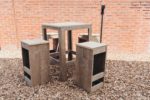 Dieses Barset  besteht aus einem Bartisch und 4 Barhockern aus Gerüstholz. Dieses Set ist komplett für euch zu einer perfekten Kombination zusammengestellt, sodass euer Fest schnell losgehen kann!