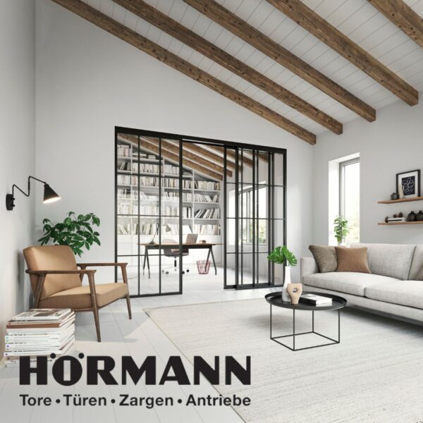 Du legst Wert auf zeitlose Eleganz und modernen Minimalismus? Dafür sind die Lofttüren von Hörmann wie gemacht. Sie bringen Design in Deine Innenräume in Harmonie mit Stahl und Glas. Die Lofttüren erhältst Du bis zu einer Elementgröße von 5000 x 4000 mm! Dabei wirken die Türen auch in dieser Größe dank ihrer schmalen Profilansicht von 76 mm (Tür) und 20 mm (Festverglasung) und den aufgesetzten Sprossen sehr elegant.Unser Experten-Team hilft Dir gerne, Deine passende Stahl-Lofttür zu finden!